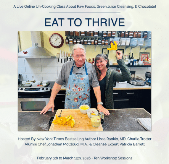 With that framework in thoughts, I need to announce, with nice pleasure on my finish, our newest on-line expertise, which is a collaboration I’m doing with Chef Jonathan McCloud and uncooked meals/ cleanse skilled Patricia Barrett, who used to run the cleanses at my integrative drugs middle in Marin County.